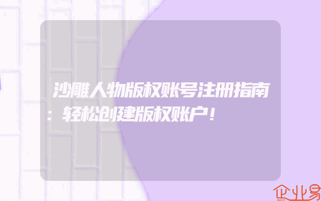 - 沙雕人物版权账号注册指南:轻松创建版权账户!一、了解版权的重要性在数字化时代,保护创意与知识产权尤为重要。沙雕作为一种富有创意的艺术形式,同样需要受到应有的版权保护。为了有效维护自己的创作成果,注册版权账号成为创作者的必经之路。二、选择适合