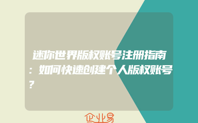 - 迷你世界版权账号注册指南:如何快速创建个人版权账号?