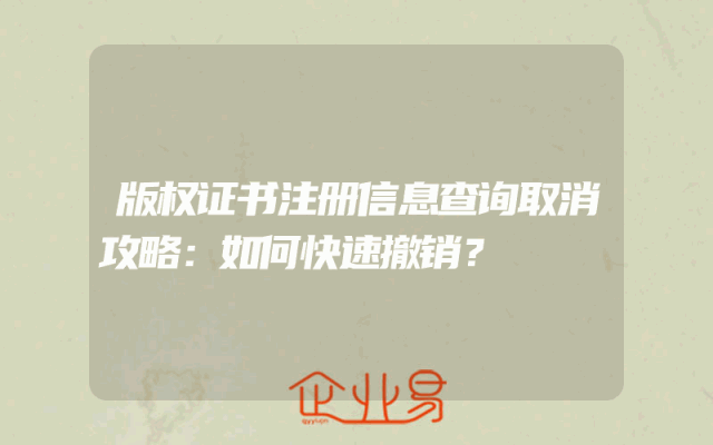 - 版权证书注册信息查询取消攻略:如何快速撤销?