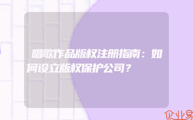 - 唱歌作品版权注册指南:如何设立版权保护公司?