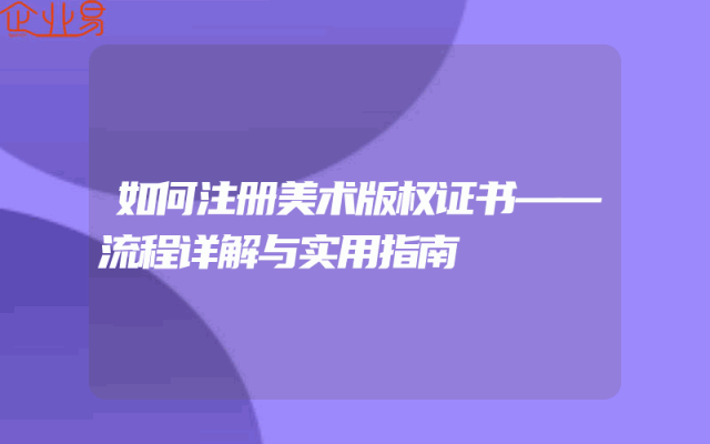 - 如何注册美术版权证书——流程详解与实用指南一、了解美术版权注册的重要性在艺术创作领域,美术作品的知识产权保护至关重要。注册美术版权证书,不仅能够有效防止他人盗用或非法复制你的作品,还能为你的创作带来商业价值的保障。因此,对于每一位艺术家而言