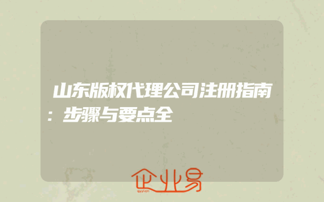 - 山东版权代理公司注册指南:步骤与要点全解析一、了解版权代理公司业务范围及法律法规在准备注册山东版权代理公司之前,首先要对版权代理行业的业务范围、相关法律法规以及市场需求有一个全面的了解。版权代理主要涉及版权登记、版权交易、版权维权等业务,需