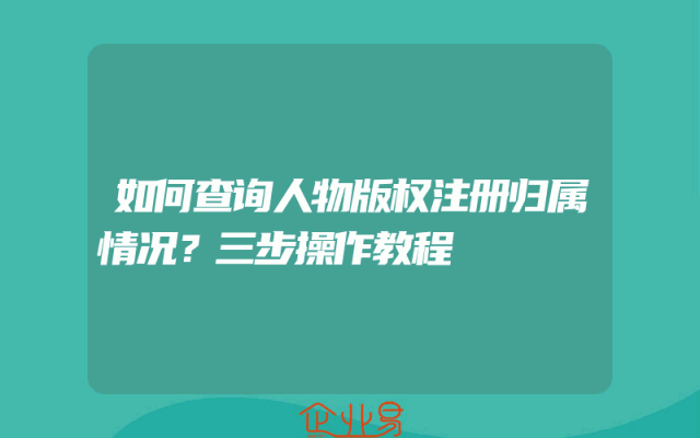 - 如何查询人物版权注册归属情况?三步操作教程一、理解版权注册基本知识在查询人物版权注册归属情况之前,我们需要对版权注册有一个基本的了解。版权,也称著作权,是指创作者对其创作的文学、艺术和科学作品享有的专有权利。为了保护自己的创作成果,创作者可