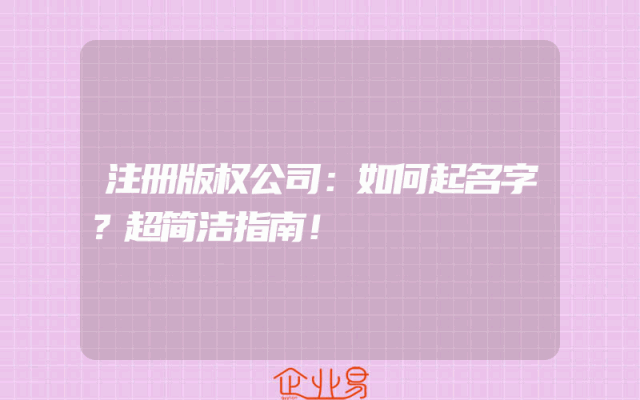- 注册版权公司:如何起名字?超简洁指南!一、了解版权与公司命名的重要性在开始注册版权公司的流程之前,起一个恰当的公司名字至关重要。版权是公司资产的重要组成部分,涉及到知识产权的保护问题,因此公司名字的选择应当充分体现出公司业务的核心——版权保