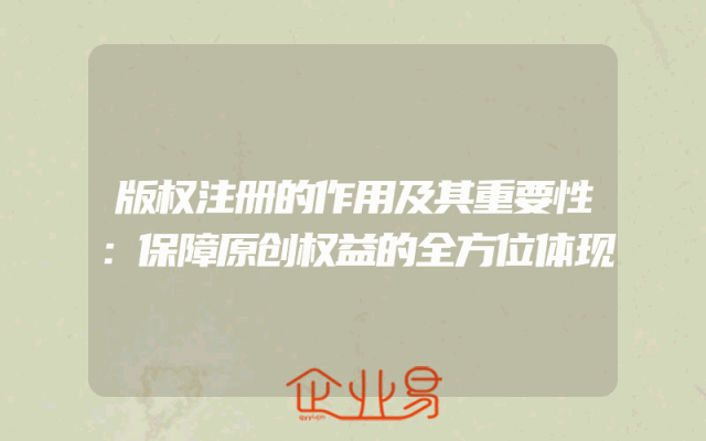 - 版权注册的作用及其重要性:保障原创权益的全方位体现