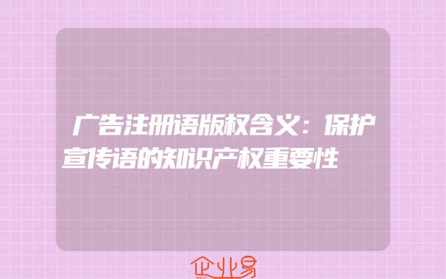 - 广告注册语版权含义:保护宣传语的知识产权重要性