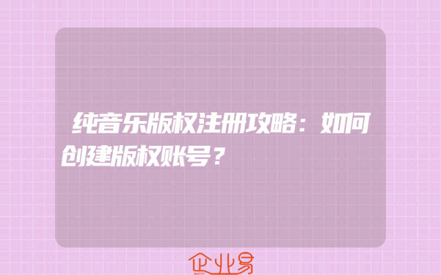 - 纯音乐版权注册攻略:如何创建版权账号?