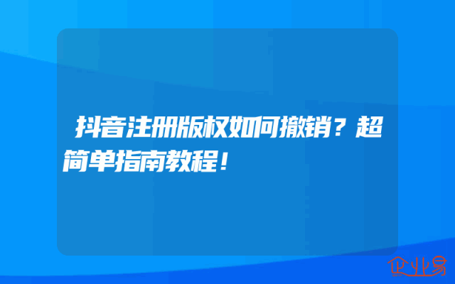 - 抖音注册版权如何撤销?超简单指南教程一、了解版权撤销需求与注意事项在数字化时代,版权问题日益受到重视,抖音平台上的版权注册与撤销操作也显得尤为重要。撤销版权注册可能是出于多种原因,如版权误注册、作品不再使用等。在开始撤销流程之前,用户需要明