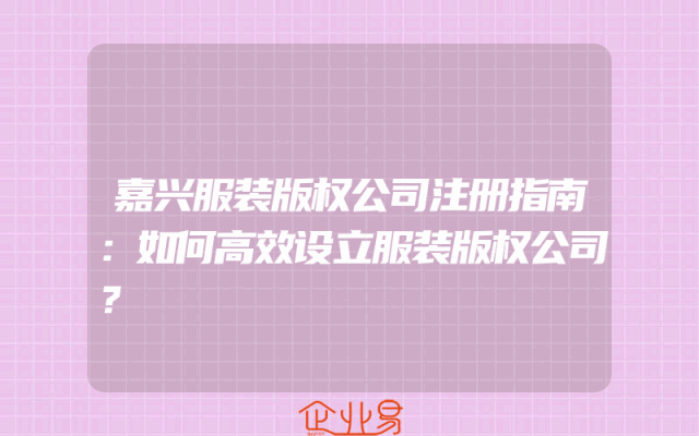 - 嘉兴服装版权公司注册指南:如何高效设立服装版权公司?