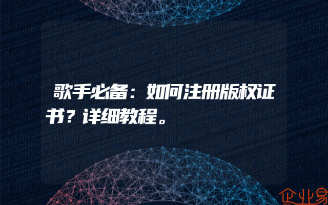 - 歌手必备:如何注册版权证书?详细教程了解版权注册的重要性在音乐创作领域,作为一位歌手,你的音乐作品是你付出心血和汗水的结晶。为了保护你的创作成果,版权注册显得尤为重要。版权证书不仅能够证明你是作品的合法创作者,还能在维权时提供有力的法律支持