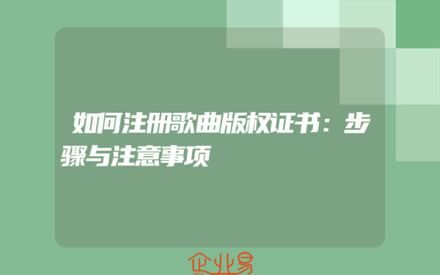 - 如何注册歌曲版权证书?一篇详尽指南!一、了解歌曲版权注册的重要性在当今音乐产业蓬勃发展的时代,保护歌曲版权成为创作者们不可忽视的重要任务。注册歌曲版权证书不仅能保障创作者的合法权益,还能有效避免侵权行为。因此,对于音乐创作者来说,了解如何注