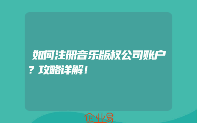 - 如何注册音乐版权公司账户?攻略详解!一、了解音乐版权公司及其服务在音乐产业中,版权是至关重要的环节。音乐版权公司致力于保护音乐创作者的知识产权,为音乐人提供版权注册、管理、维权等服务。为了享受这些服务,首先需要在音乐版权公司注册一个账户。二