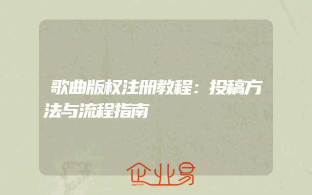 - 歌曲版权注册教程:投稿方法与流程指南一、了解歌曲版权注册的重要性在音乐创作领域,保护歌曲版权是至关重要的。版权注册能够确保创作者对其作品的合法权益得到保护,避免侵权行为的发生。同时,注册版权也是维权的重要依据,有助于打击盗版和非法传播行为。