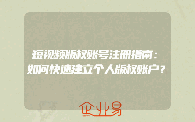 - 短视频版权账号注册指南:如何快速建立个人版权账户?