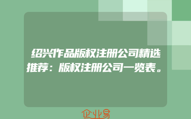 - 绍兴作品版权注册公司精选推荐:版权注册公司一览表。