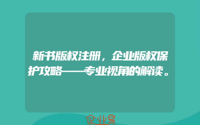 - 新书版权注册,企业版权保护攻略——专业视角的解读。