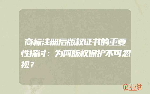 - 商标注册后版权证书的重要性探讨:为何版权保护不可忽视?