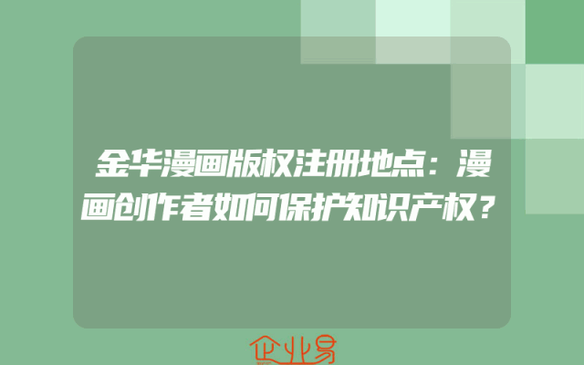 - 金华漫画版权注册地点:漫画创作者如何保护知识产权?