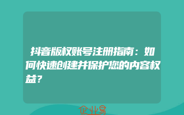 - 抖音版权账号注册指南:如何快速创建并保护您的内容权益?