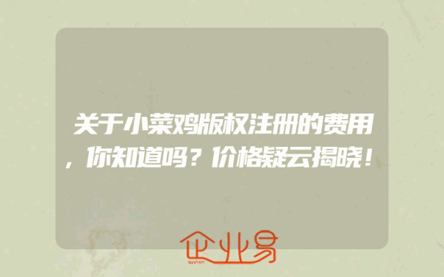 - 关于小菜鸡版权注册的费用,你知道吗?价格疑云揭晓!