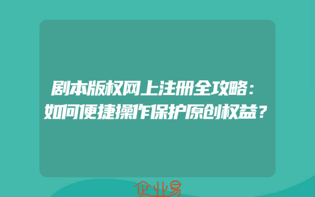 - 剧本版权网上注册全攻略:如何便捷操作保护原创权益?