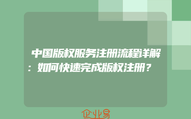 - 中国版权服务注册流程详解:如何快速完成版权注册?