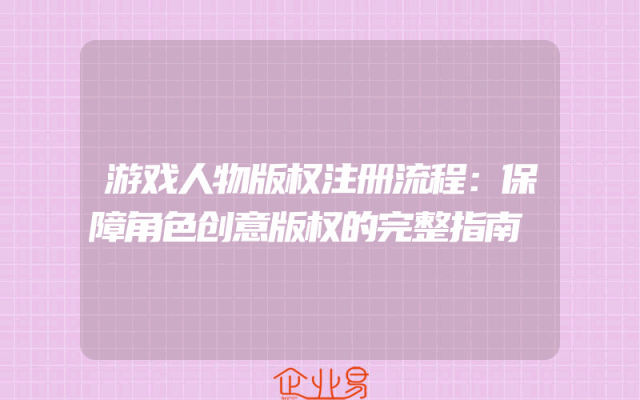 - 游戏人物版权注册流程:保障角色创意版权的完整指南一、了解游戏人物版权的重要性随着游戏产业的飞速发展,游戏角色作为游戏的重要组成部分,其创意和设计成果日益受到重视。保护游戏人物的版权,不仅是对创作者劳动成果的尊重,更是对整个游戏行业健康发展的