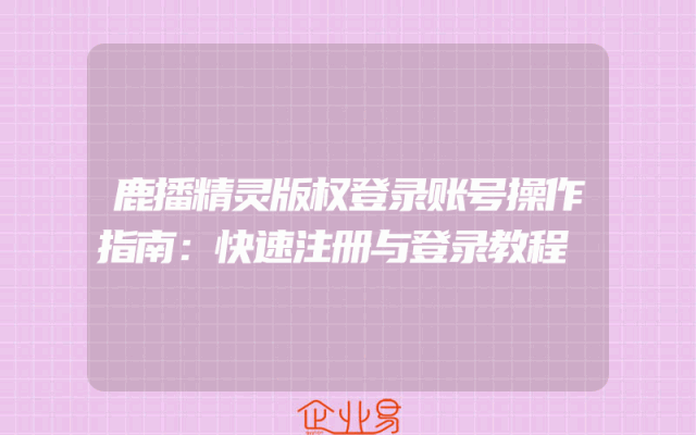 - 鹿播精灵版权登录账号操作指南:快速注册与登录教程