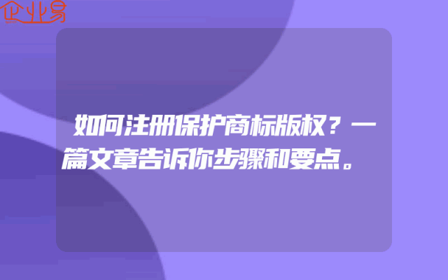 - 如何注册保护商标版权?一篇文章告诉你步骤和要点。