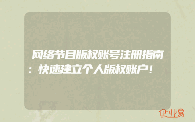 - 网络节目版权账号注册指南:快速建立个人版权账户!