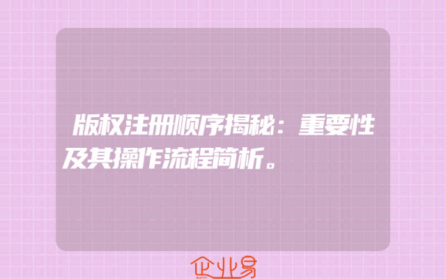 - 版权注册顺序揭秘:重要性及其操作流程简析。