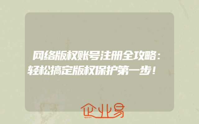 - 网络版权账号注册全攻略:轻松搞定版权保护第一步!一、了解网络版权的重要性随着互联网的普及和数字化内容的爆发式增长,网络版权问题日益凸显。保护自己的原创作品,防止他人盗用或非法传播,成为每位创作者必须重视的问题。注册网络版权账号是版权保护的第