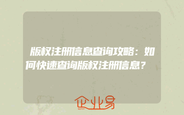 - 版权注册信息查询攻略:如何快速查询版权注册信息?