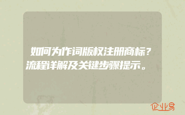 - 如何为作词版权注册商标?流程详解及关键步骤提示。