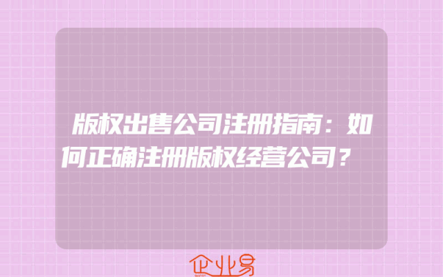 - 版权出售公司注册指南:如何正确注册版权经营公司?