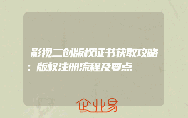 - 影视二创版权证书获取攻略:版权注册流程及要点