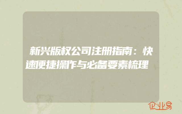 - 新兴版权公司注册指南:快速便捷操作与必备要素梳理