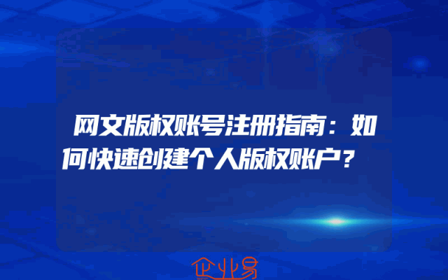 - 网文版权账号注册指南:如何快速创建个人版权账户?