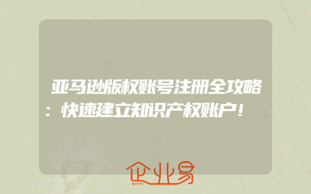- 亚马逊版权账号注册全攻略:快速建立知识产权账户!