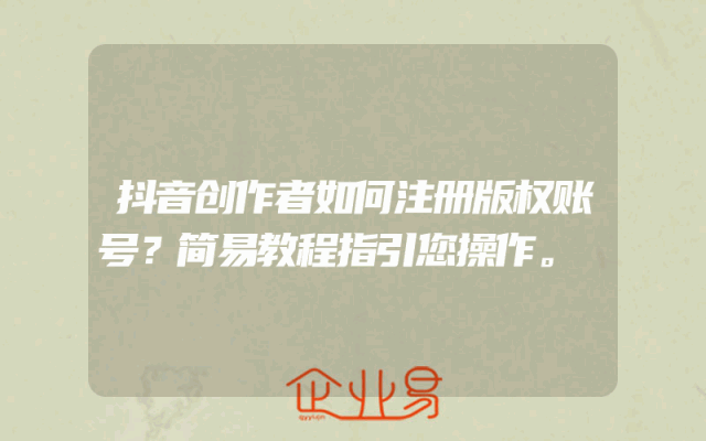 - 抖音创作者如何注册版权账号?简易教程指引您操作。