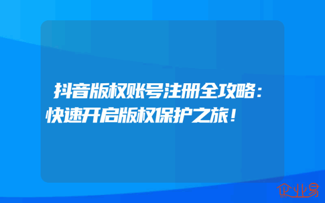 - 抖音版权账号注册全攻略:快速开启版权保护之旅!一、了解抖音版权保护的重要性随着抖音平台的快速发展,越来越多的创作者在抖音上分享自己的创意和作品。因此,保护原创内容版权成为了一个重要的问题。注册抖音版权账号是保护个人作品版权的第一步,可以有效