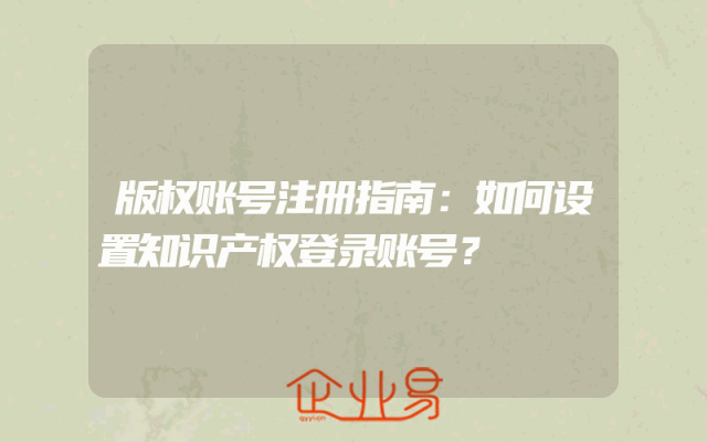 - 版权账号注册指南:如何设置知识产权登录账号?