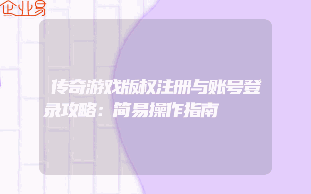 - 传奇游戏版权注册与账号登录攻略:简易操作指南
