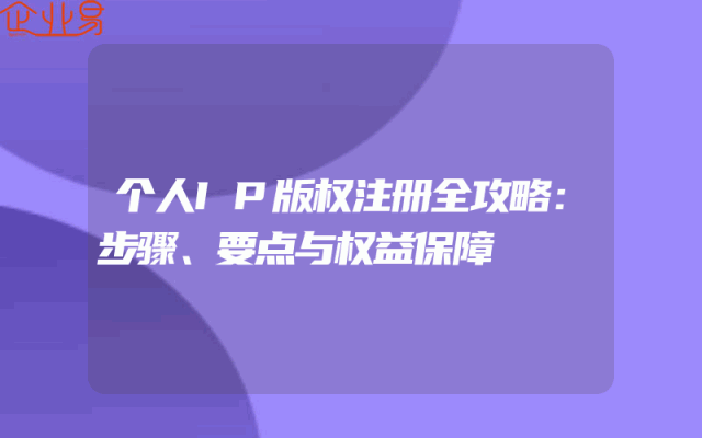 - 个人IP版权注册全攻略:步骤、要点与权益保障在现代社会,个人知识产权的保护愈发受到重视,个人IP(知识产权)的注册成为许多创作者的必经之路。本文将为您详细解读个人IP版权注册的步骤、要点以及权益保