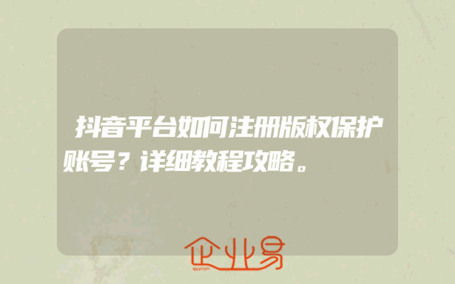 - 抖音平台如何注册版权保护账号?详细教程攻略一、了解版权保护的重要性随着抖音平台的迅速发展,越来越多的人选择在抖音上创作和分享内容。为了确保原创内容的权益,注册版权保护账号显得尤为重要。版权保护不仅能帮助创作者维护自己的创作成果,还能为整个抖