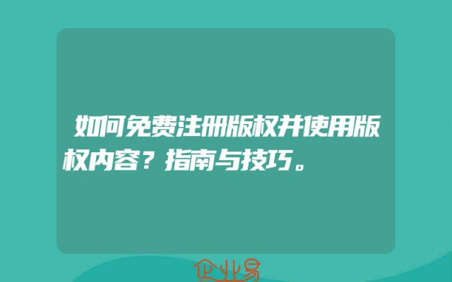 - 如何免费注册版权并使用版权内容?指南与技巧。