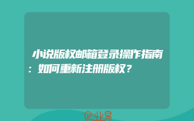- 小说版权邮箱登录操作指南:如何重新注册版权?