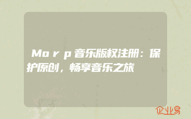 - Morp音乐版权注册:保护原创,畅享音乐之旅在这个充满创新与创意的时代,音乐已成为人们生活中不可或缺的一部分。而对于音乐创作者来说,保护自己的原创作品,确保其版权不受侵犯,显得尤为重要。Morp音乐