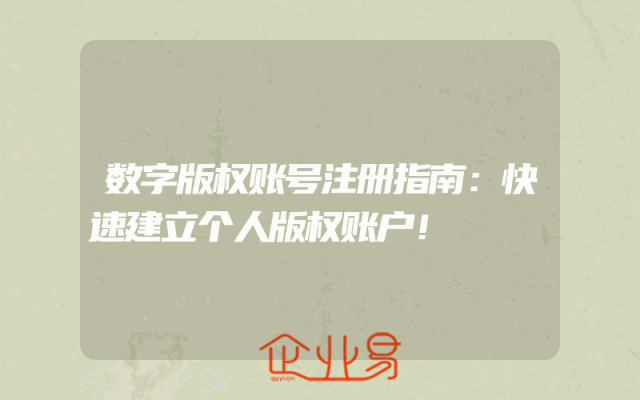 - 数字版权账号注册指南:快速建立个人版权账户!