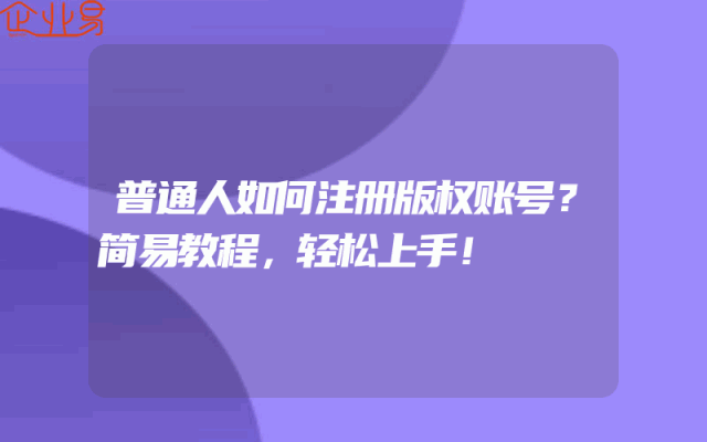 - 普通人如何注册版权账号?简易教程,轻松上手!